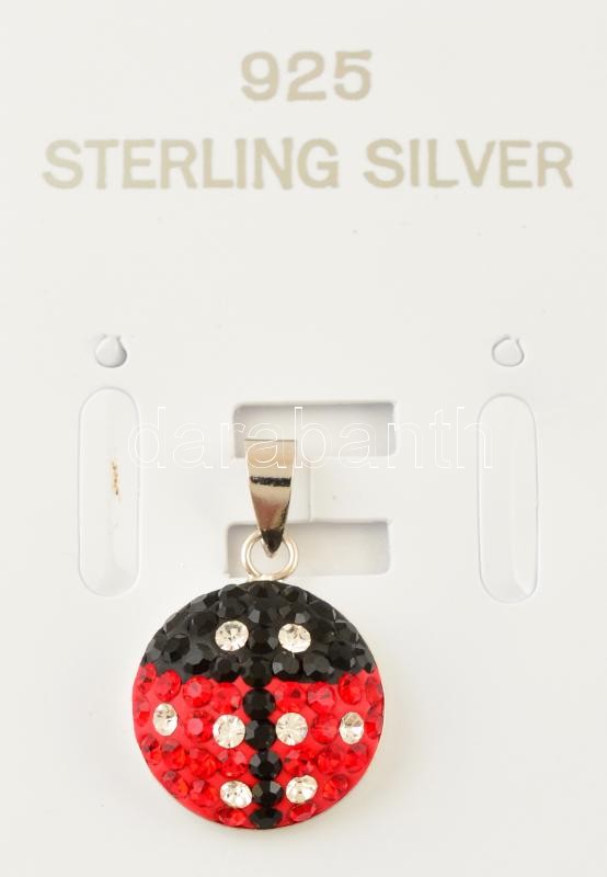 Ezüst(Ag) katicás medál, strasszokkal díszítve, jelzett, d: 1,5 cm, bruttó: 1,7 g