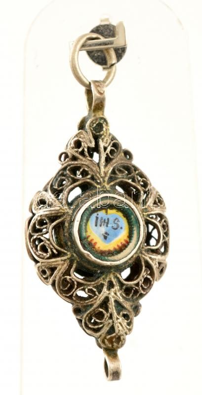 Ezüst(Ag) medál, zománcozott díszítéssel, jelzett, 3×2 cm, bruttó: 4,3 g
