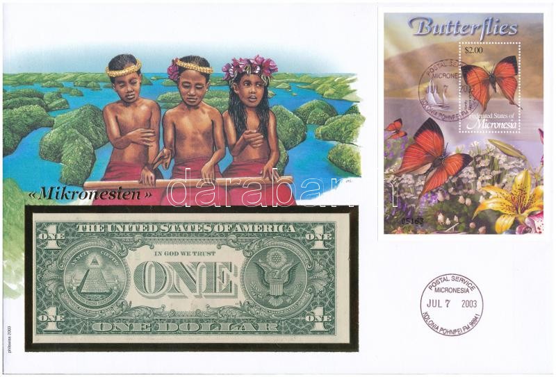 Mikronéziai Szövetségi Államok 2003. 1$ felbélyegzett borítékban, bél... https://www.darabanth.com/en/361-Online-auction/361.0/Numismatics/Envelopes-with-Coins-and-Banknotes~2000004/Mikroneziai-Szovetsegi-Allamok-2003-1USD-felbelyegzett-boritekban-belyegzessel-TI--Feder~II2074152