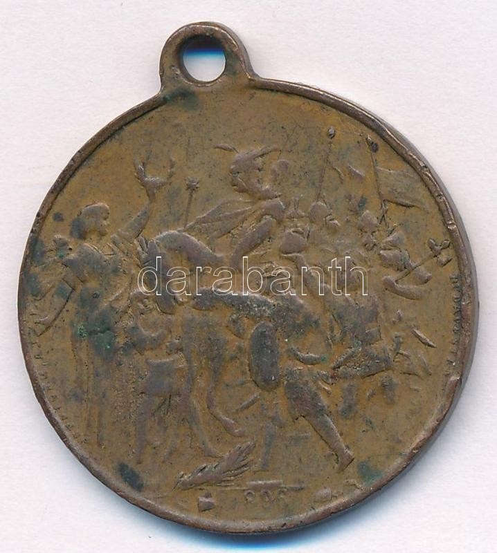 1896. "Ezredéves Történetünk Ezredekre Remény Nekünk - Honfoglalás" millenniumi Br emlékérem füllel (32,5mm) T:2- ph.