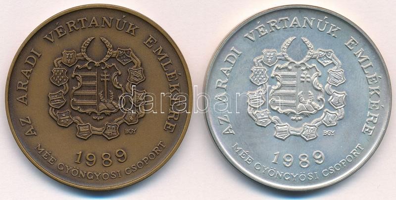 Bognár György (1944-) 1989. "MÉE Gyöngyösi Csoport - Aradi Vértanúk / Poeltenberg Ernő" Br és Ag emlékérem pár (34,62g/0.640/42,5mm) T:1