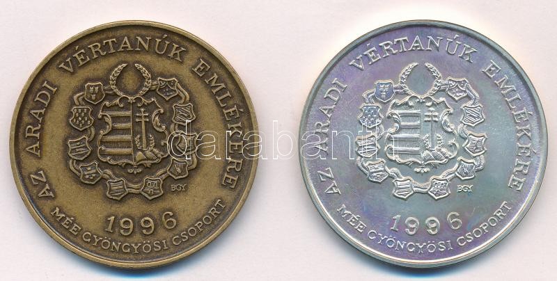 Bognár György (1944-) 1996. "MÉE Gyöngyösi Csoport - Aradi Vértanúk / Schweidel József" Br és Ag emlékérem pár (34,86g/0.640g/42,5mm) T:1
