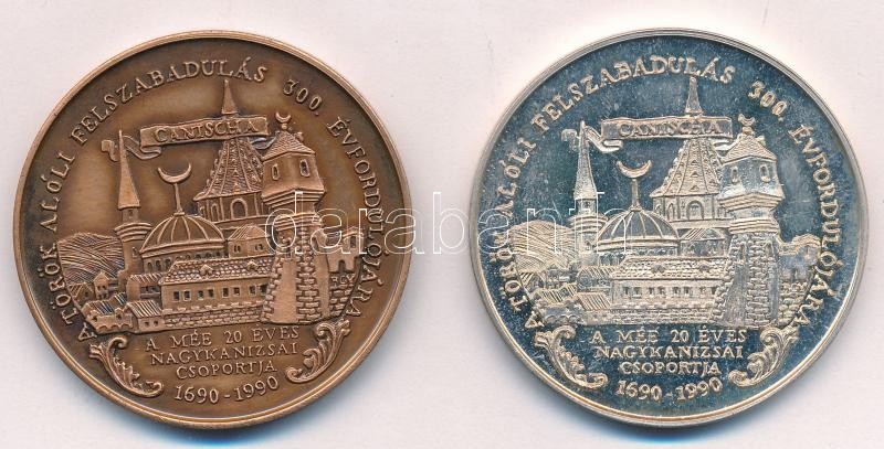 Description: Szabó Géza (1939-) 1990. "MÉE Nagykanizsa / A török alóli felszabadulás 300. évfordulójára - Gróf Batthyány Ádám" Br és Ag emlékérem pár (35,83g/0.835/42,5mm) T:1-