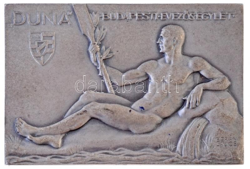 Berán Lajos (1882-1943) DN "DUNA / Budapesti Evezős Egylet" ezüstözött Br plakett (40x58mm) T:1-