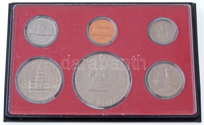Description: Amerikai Egyesült Államok 1975S 1c + 5c + 1d + 1976S 1/4$ + 1/2$ + 1$ forgalmi sor, tokban T:PP