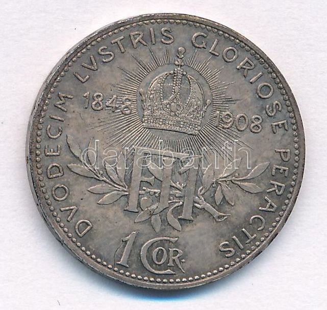 https://www.darabanth.com/en/361-Online-auction/361.0/Numismatics/Worldwide-silver-and-metal-coins~2000014/Ausztria-1908-1K-Ag-Ferenc-Jozsef-Jubileum-T1-patina-Austria-1908-1-Corona-Ag-Franz-Josep~II1990607
