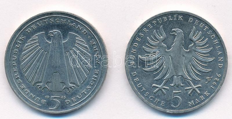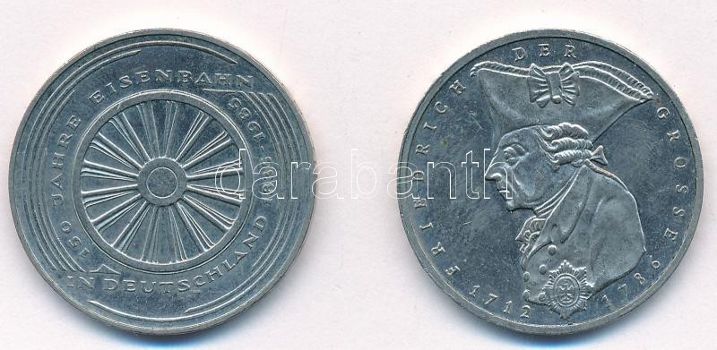 Description: NSZK 1985G 5M Cu-Ni "150 éves a Német Vasút" + 1986F 5M Cu-Ni "Nagy Frigyes halálának 200. évfordulója" T:2