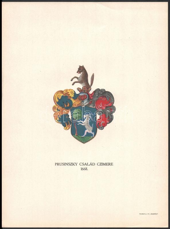 cca 1900 A Prusinszky család címere. Litográfia. 32x24 cm