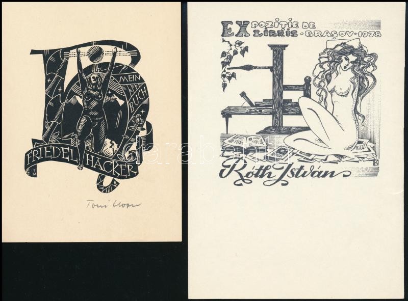 6 db erotikus ex libris, vegyes technika, papír, jelzéssel és jelzés nélkül