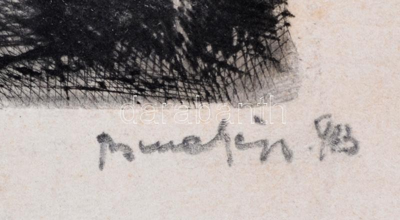 Bene Géza (1900-1960): Anya gyermekeivel. Rézkarc, papír, jelzett, 10,...
