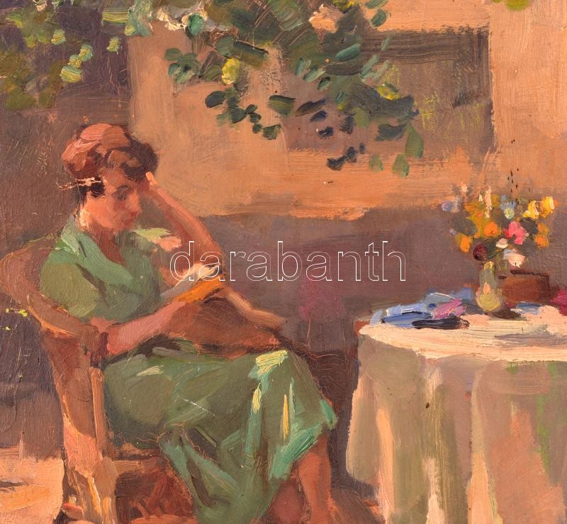 Csallóközi Farkas Lőrinc (1898-1966): Olvasó nő az asztalnál. Olaj, ka...