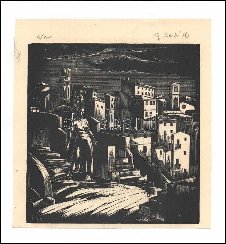 Gáborjáni Szabó Kálmán (1897-1955): Vízhordó, fametszet, papír, jelzet...