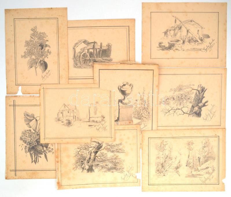 Gyulay Janka (?-?): 9 db illusztráció. Ceruza, papír, jelzett (Gyulay ...