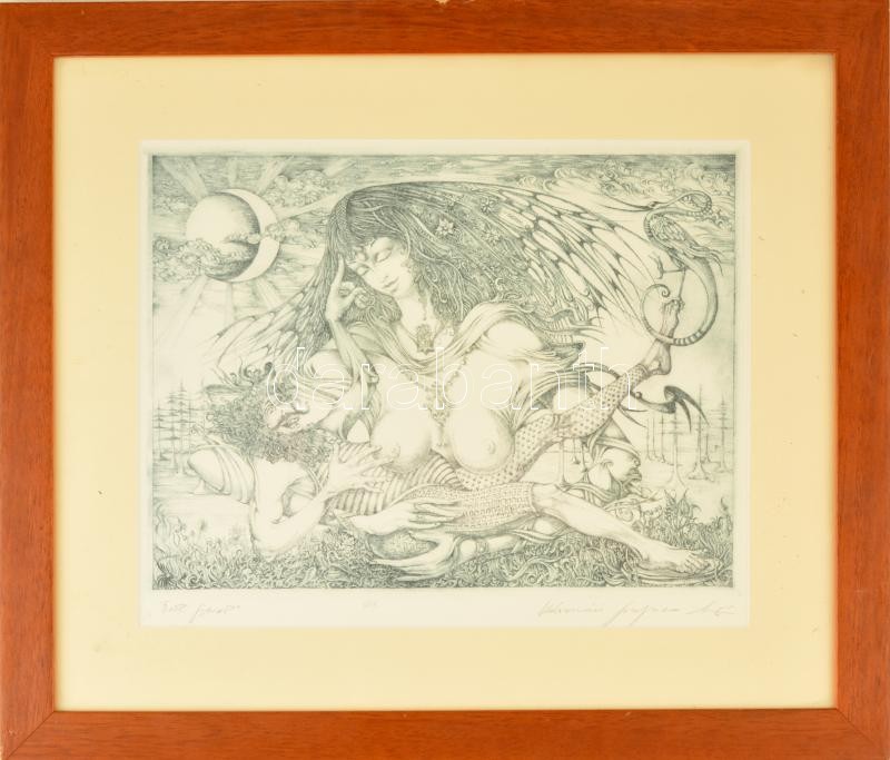 Kolozsvári G.Miklós (1950-): Örök gyerek. Rézkarc, papír, jelzett, üve...