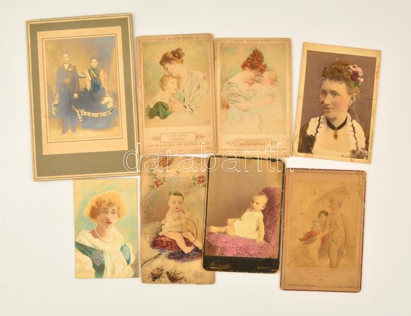 cca 1900-1910 Vegyes fotó tétel, 8 db, festett keményhátú fotók és fes...