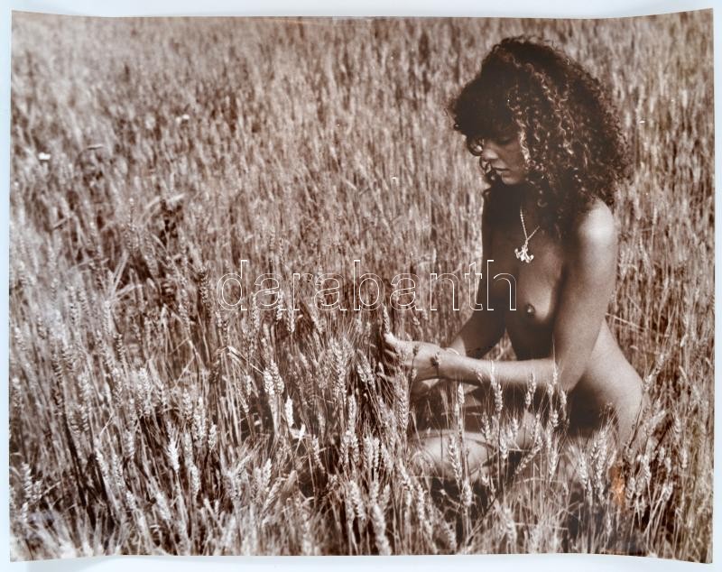 cca 1988 Menesdorfer Lajos (1941-2005) budapesti fotóművész hagyatékából, pecséttel jelzett, feliratozott, vintage fotóművészeti alkotás (... dús kalásszal jő ...), 30x39 cm