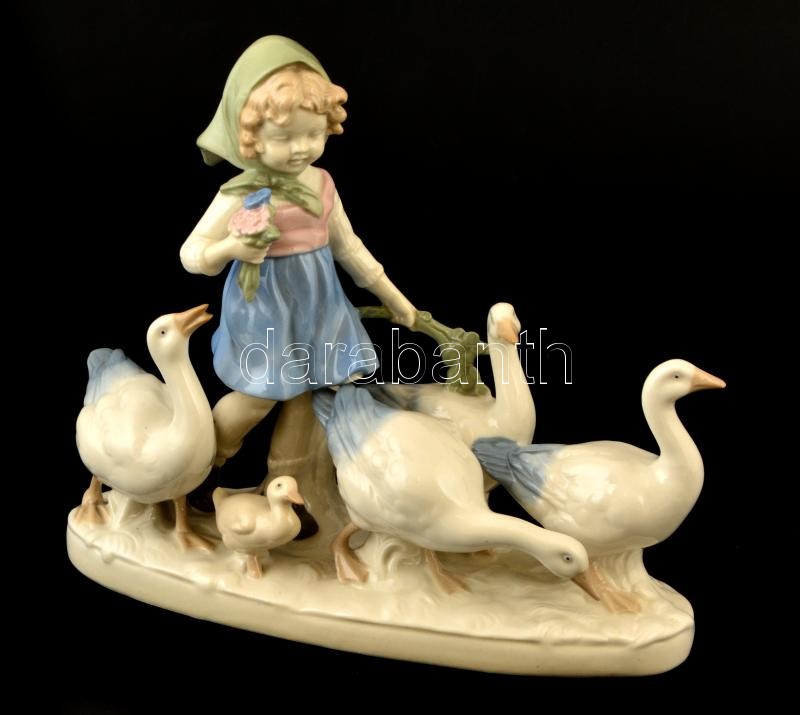 Carl Scheidig K.G. libapásztorlány, kézzel festett, jelzett, apró kopásnyomokkal, m: 19 cm, h: 21,5 cm