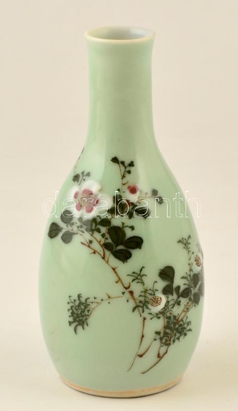 Virágmintás porcelán váza, kézzel festett, jelzés nélkül, kis kopásnyomokkal, m: 17 cm