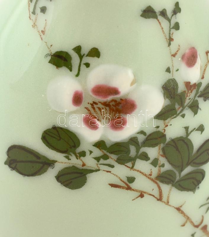 Virágmintás porcelán váza, kézzel festett, jelzés nélkül, kis kopásnyo...