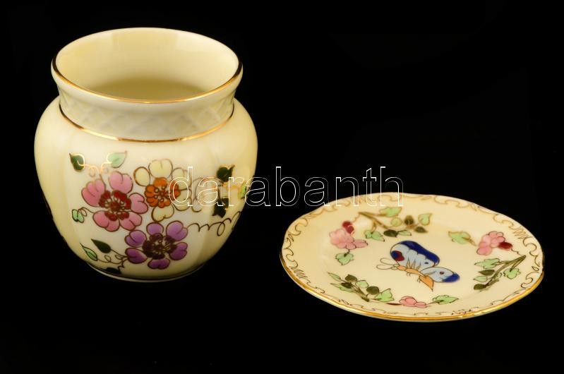 Zsolnay pillangó mintás mini kaspó és tálka, kézzel festett, d:8,5 cm,...