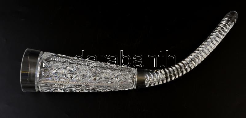 Ólomkristály üveg kürt, sófár metszett, h: 45 cm