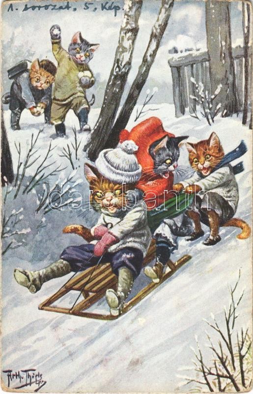 Cats sledding in winter. T.S.N. Serie 1194. (6 Dess) s: Arthur Thiele (worn corners)