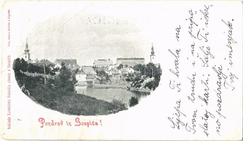 1900 Goszpics, Gospic; látkép, templomok / general view with churches. Naklada Lavoslava Vukelica (EB)
