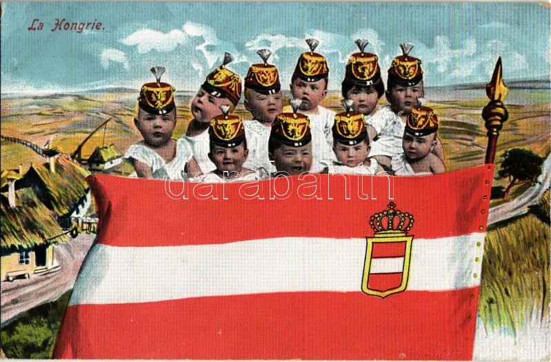 https://www.darabanth.com/en/361-Online-auction/361.0/Postcards/Flags-Coat-of-Arms~1500107/La-Hongrie-Hungary-Flag-of-Austria-with-babies~II1962848