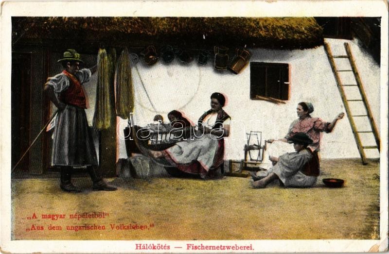Hálókötés. A magyar népéletből / Hungaroan folklore, fishing net maker...