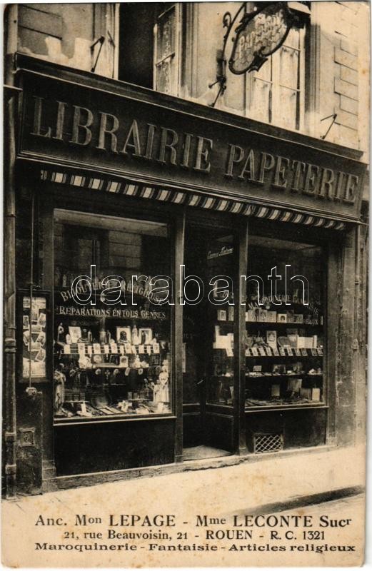 Rouen, Librairie Papeterie. Anc. Mon Lepage mme Leconte Sucr. 21, Rue Beauvoisin / book and paper shop