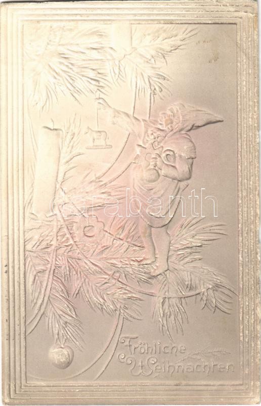 Fröhliche Weihnachten / Christmas greeting card with dwarf and Christmas tree. Emb. (EK)