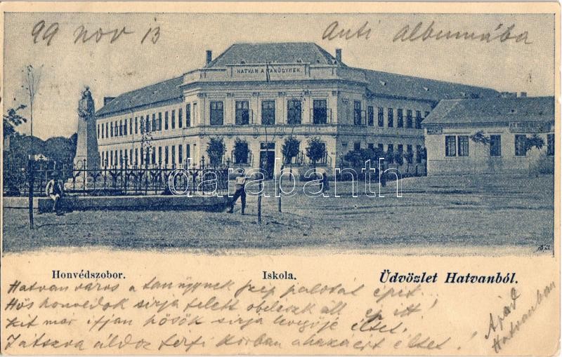 1899 Hatvan, Honvédszobor, iskola "Hatvan a tanügynek", üzlet