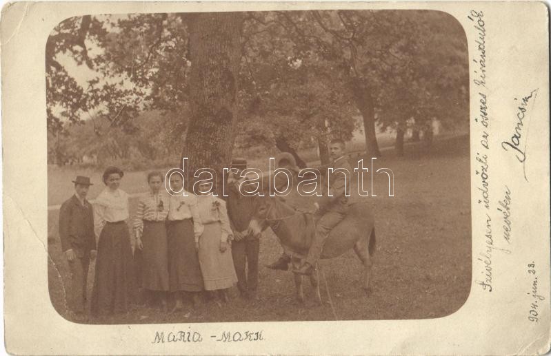 1904 Budakeszi, Máriamakk, kirándulók szamárral. photo (EB)