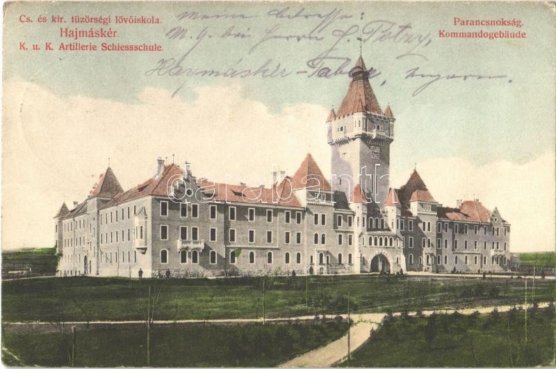 1912 Hajmáskér, Cs. és kir. tüzérségi lövőiskola, parancsnokság. Csucs Károly kiadása (EK)
