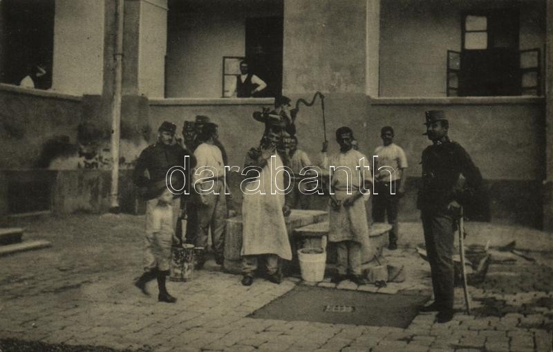 1912 Szombathely (?), Gyalogsági laktanya, K.u.K. katonák az udvaron. ...