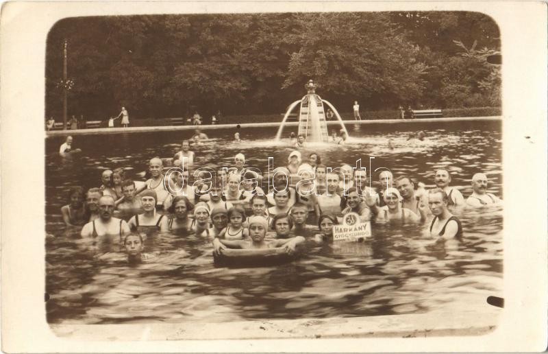 1938 Harkányfürdő, fürdőzők csoportképe. photo