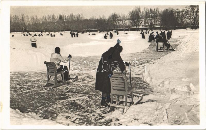Balatonkenese, Fakutyázás a Balatonon télen, téli sport. Dulovits Jenő...