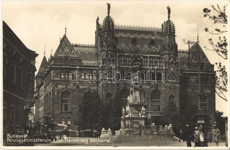 Budapest I. Pénzügyminisztérium palotája, Szentháromság szobor, piac, ...