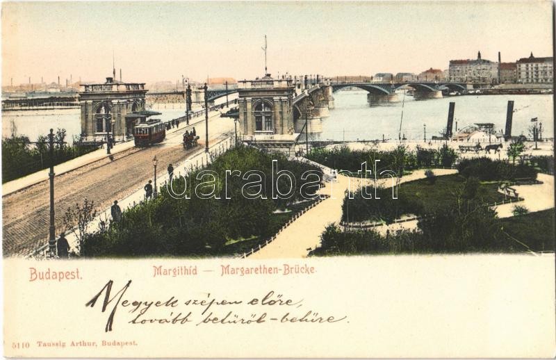 Budapest, Margit híd, villamos. Taussig Arthur 5110.
