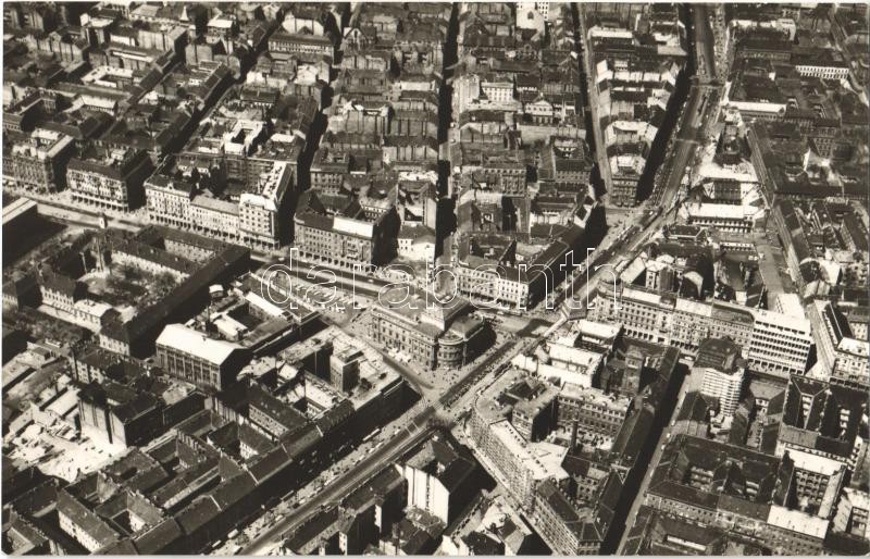 Budapest VIII. Látkép a régi Nemzeti Színházzal, légi felvétel. Képzőművészeti Alap kiadása
