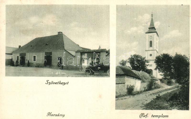 https://www.darabanth.com/en/361-Online-auction/361.0/Postcards/Hungary~1500006/Harsany-Reformatus-templom-automobil-Szovetkezet-uzlete-es-sajat-kiadasa-fl~II1861633