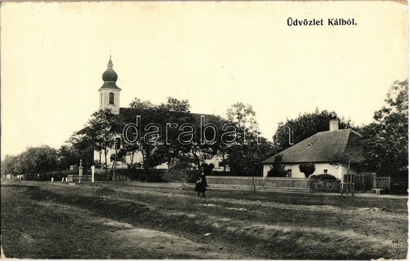 Kál, utca, templom (kicsit ázott / small wet damage)