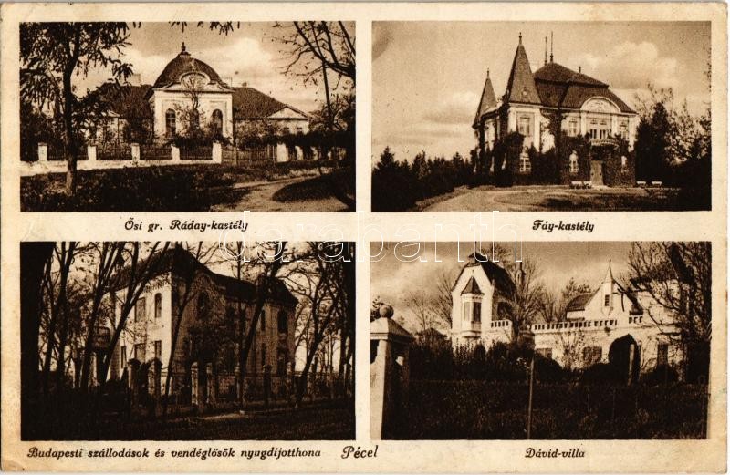 Pécel, Ősi gróf Ráday és Fáy kastély, Dávid villa, Budapesti szállodások és vendéglősök nyugdíjotthona (Rb)