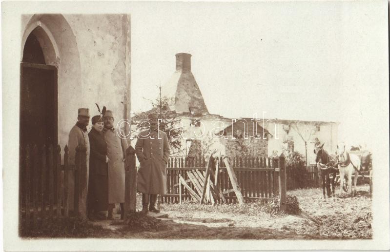 Description: 1916 Osztrák-magyar katonák Radehivben (Radziechów), romos épületek / WWI Austro-Hungarian K.u.K. military, soldiers with lady in Radekhiv (Ukraine), ruined buildings. photo