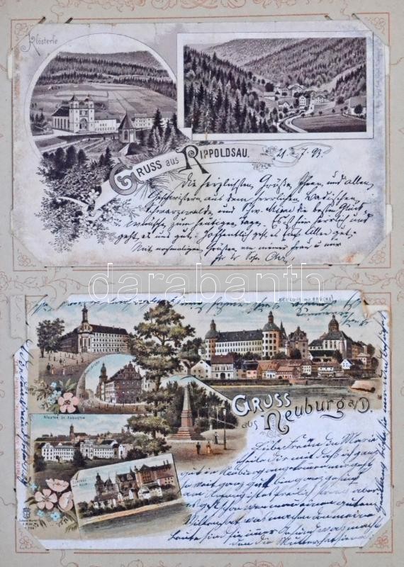 68 db RÉGI német litho városképes lap albumban. Vegyes minőség / 68 pr...