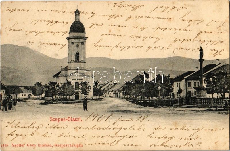 1901 Szepesolaszi, Wallendorf, Spisské Vlachy; Fő tér, templom. Szolle...