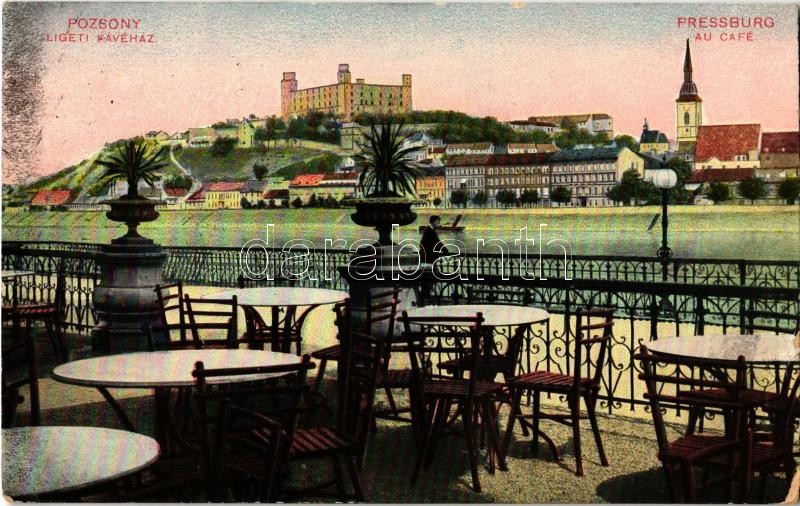 1909 Pozsony, Pressburg, Bratislava; Ligeti kávéház terasza, vár. Bedi...