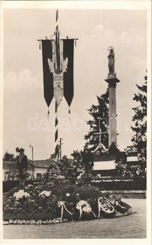 1938 Ipolyság, Sahy; bevonulás, országzászló / Hungarian flag during t...