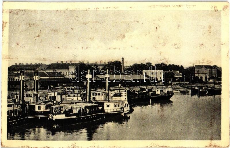 Komárom, Komárno; Duna és kikötő, gőzhajók / port, steamships "19...