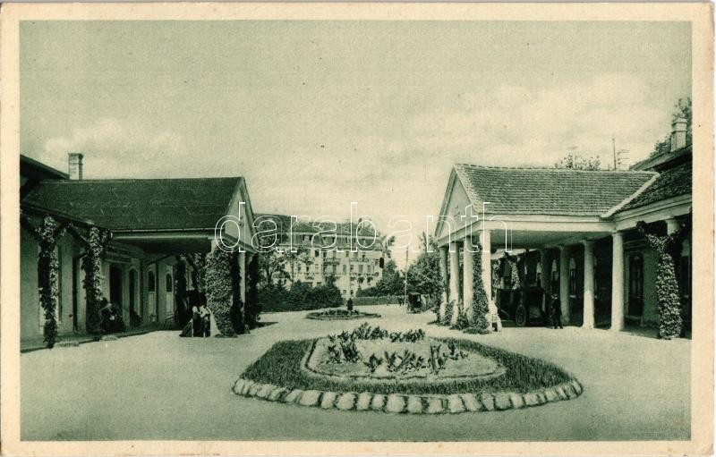 Pöstyén-fürdő, Kúpele Piestany; régi fürdők, háttérben a Thermia Palace szálló / old spas with hotel